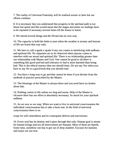 14. Nothing comes in life unless we slog and sweat. Help of the Master is ofcourse there but our effort is absolutely necessary. So much for your spiritual sadhana.