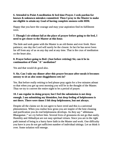 8. Prayer before going to Bed: (Just before retiring) Sir, can it be in continuation of Point "A" mediation?