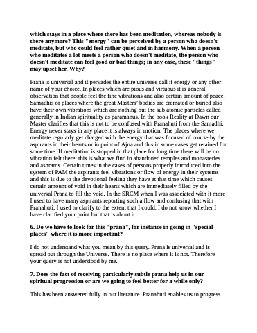 6. Do we have to look for this "prana", for instance in going in "special places" where it is more important?