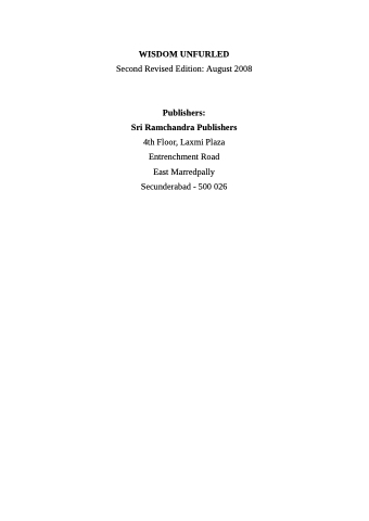 WISDOM UNFURLED Second Revised Edition: August 2008 Publishers: Sri Ramchandra Publishers 4th Floor, Laxmi Plaza Entrenchment Road East Marredpally Secunderabad - 500 026