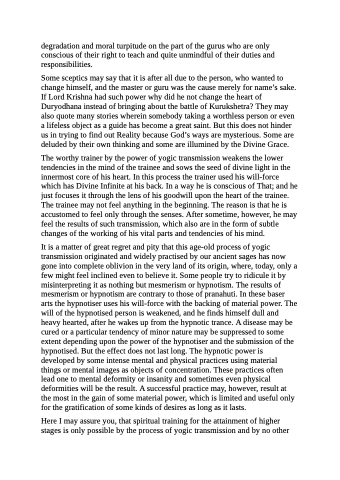 Here I may assure you, that spiritual training for the attainment of higher stages is only possible by the process of yogic transmission and by no other