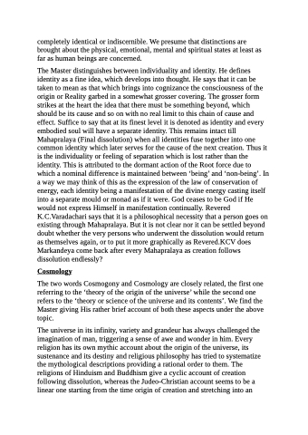 The two words Cosmogony and Cosmology are closely related, the first one referring to the ‘theory of the origin of the universe’ while the second one refers to the ‘theory or science of the universe and its contents’. We find the Master giving His rather brief account of both these aspects under the above topic.