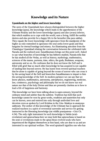 Knowledge and its Nature Upanishads on the higher and lower knowledge